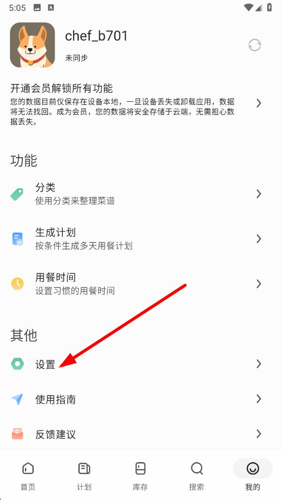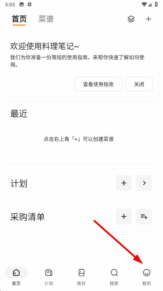 1、打開料理筆記app,點擊底部導(dǎo)航欄最右側(cè)我的,進(jìn)入個人相關(guān)界面。
