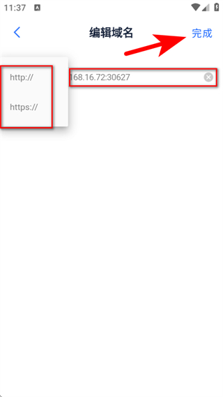 3、輸入域名地址后,點擊右上角完成,即可完成域名信息的編輯。