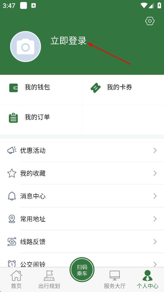 3、在個(gè)人中心頁(yè)面點(diǎn)擊“立即登錄”,進(jìn)入登錄界面。