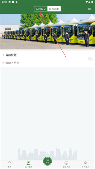 2、進(jìn)入該頁(yè)面內(nèi),點(diǎn)擊上方實(shí)時(shí)公交的標(biāo)簽進(jìn)行切換。