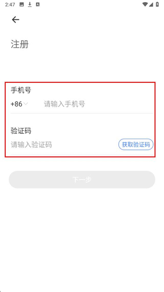 3、輸入手機號,填入收到的驗證碼,點擊下一步。
