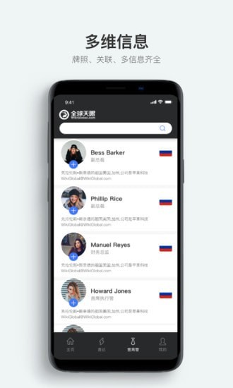 全球天眼覆蓋100+國(guó)家3億+全球企業(yè)查詢,實(shí)時(shí)搜索海量企業(yè)和高管信息,牌照、關(guān)聯(lián)、多類信息齊全,為客戶提供決策支持!