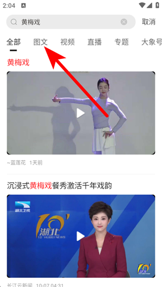 3、在搜索的結(jié)果頁(yè),可以選擇點(diǎn)擊圖文分類,篩選圖文類內(nèi)容。
