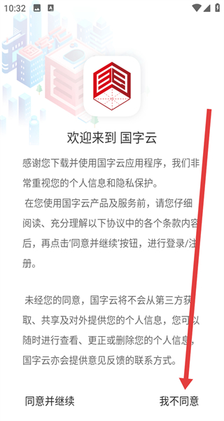 1、打開國字云APP,點擊同意并繼續(xù)按鈕,確認個人信息保護政策,進入APP主界面。