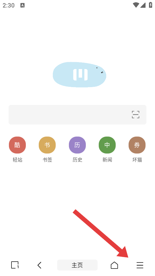 1、打開M瀏覽器,點擊界面右下角的菜單圖標(biāo),展開功能菜單。