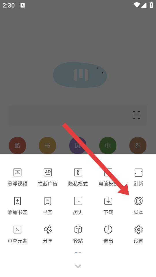2、在功能的菜單中,點擊腳本的選項,進入網(wǎng)頁腳本管理頁面。