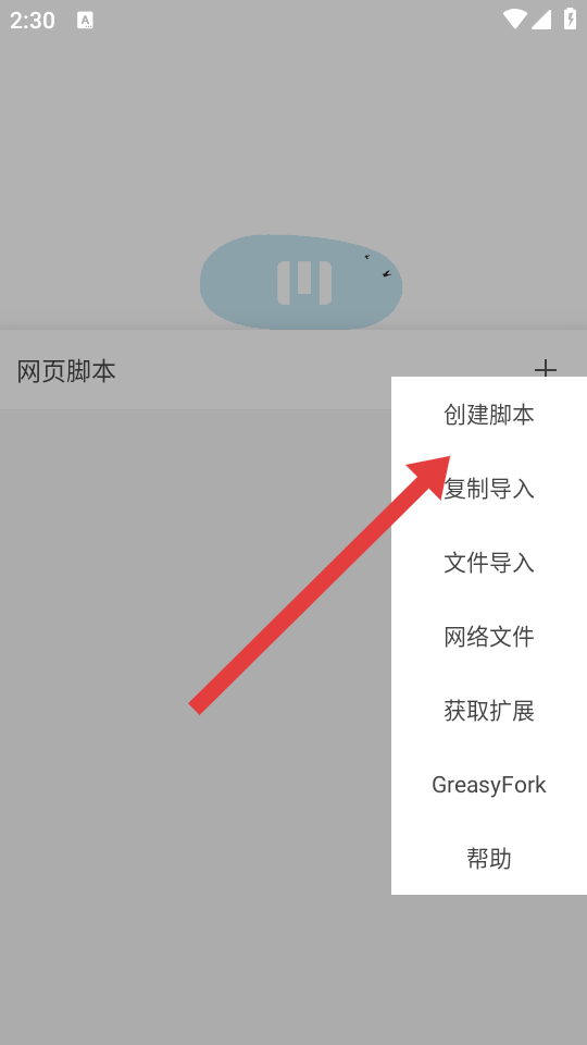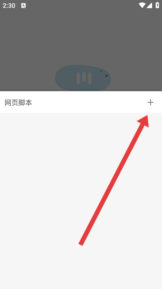 3、在網(wǎng)頁腳本頁面,點擊右上角的+號按鈕,彈出操作選項菜單。