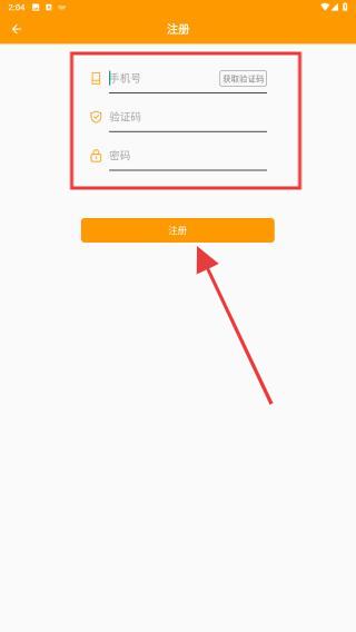 4、進(jìn)入注冊的頁面內(nèi),輸入注冊的手機(jī)號、驗證碼以及密碼,再點擊注冊的按鈕即可。