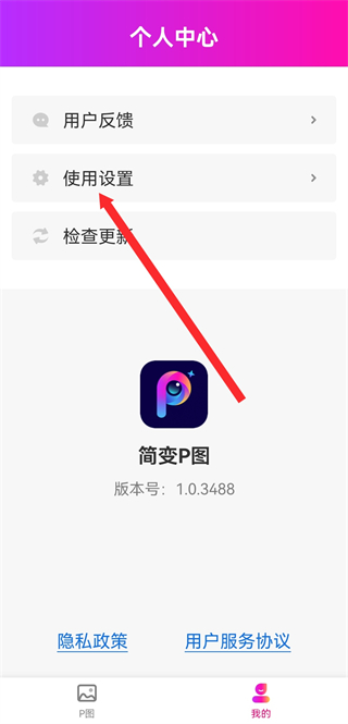1、打開簡變P圖APP,點擊右下角我的,進入個人中心頁面。
