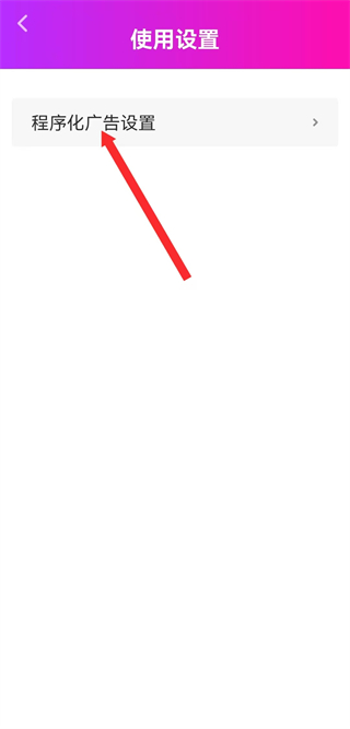 3、在使用設(shè)置界面,點擊程序化廣告設(shè)置,進入廣告設(shè)置頁面。