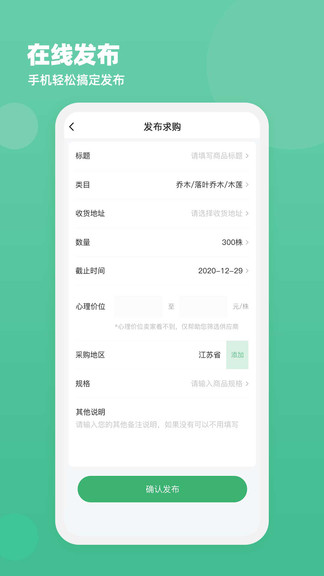 科學合理的苗木分類,方便快捷的商品發(fā)布,購買流程,讓苗木花卉交易更加便捷!