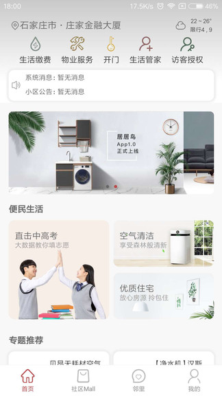 居居鳥app是大美集團(tuán)打造的以社區(qū)為中心,圍繞業(yè)主的日常生活及社區(qū)周邊開展的電商及物業(yè)服務(wù)平臺。