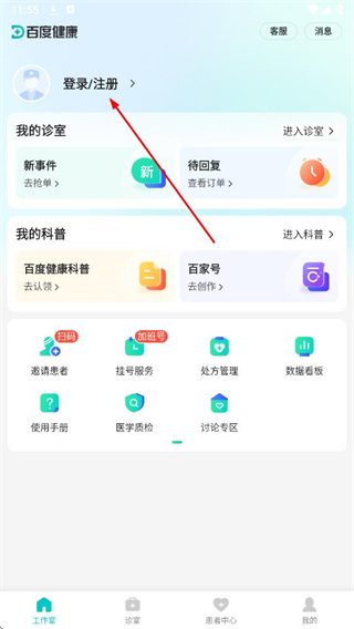 1、打開百度健康醫(yī)生版APP,點擊登錄/注冊。