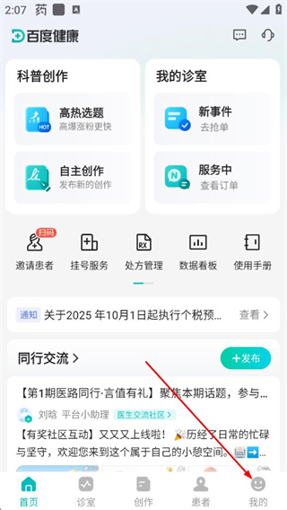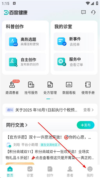 1、打開百度健康醫(yī)生版App的首頁,點擊底部的我的選項。