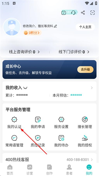 2、在我的頁面點擊我的認(rèn)證選項,進入實名認(rèn)證頁面。