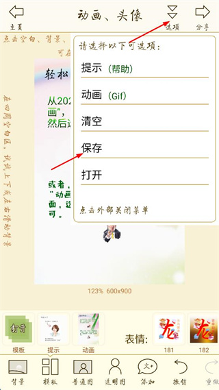 4、在可選項(xiàng)菜單中,點(diǎn)擊保存選項(xiàng)完成動畫頭像的保存操作。