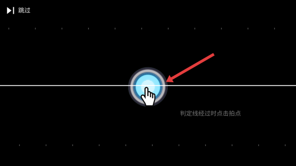 2、音游環(huán)節(jié)里,當(dāng)判定線(xiàn)經(jīng)過(guò)藍(lán)色拍點(diǎn)時(shí),及時(shí)點(diǎn)擊該拍點(diǎn),完成節(jié)奏判定操作。