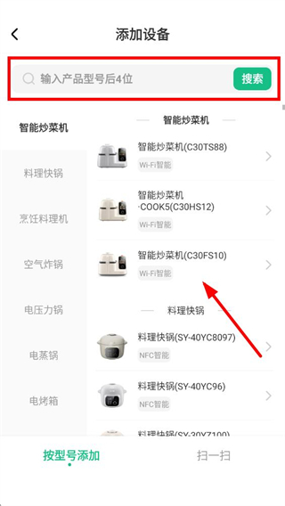 2、在添加設(shè)備頁面,可通過搜索框輸入產(chǎn)品型號搜索,或在設(shè)備列表中選擇。