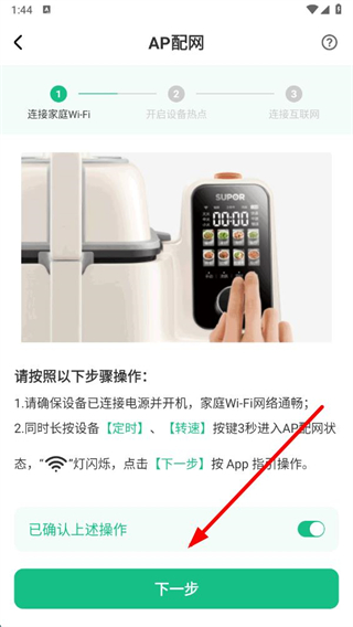 4、按照提示步驟操作,點擊下一步,按指引完成配網(wǎng)即可添加設(shè)備。