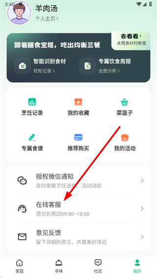 2、在我的頁面中,找到在線客服選項并點擊,進入客服溝通界面。