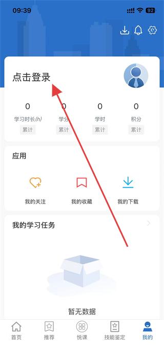 3、在我的頁面中,點(diǎn)擊上方的點(diǎn)擊登錄區(qū)域,進(jìn)入登錄頁面。