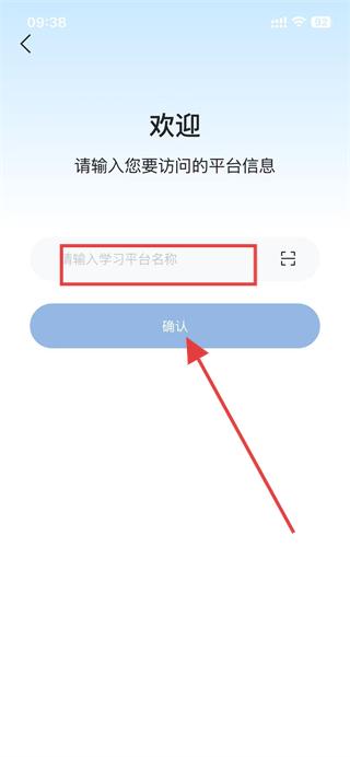 1、打開知云學(xué)app,在初始頁面填寫平臺(tái)名稱,點(diǎn)擊確認(rèn)按鈕。