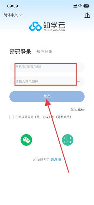 4、在登錄頁面中,填寫賬號(hào)和密碼,點(diǎn)擊登錄,即可完成登錄。