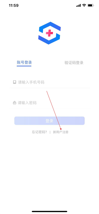 1、打開施強健康A(chǔ)PP,在登錄頁面點擊新用戶注冊。