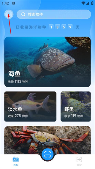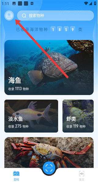 1、打開海洋物種百科APP,點擊左上角頭像進入個人頁面。