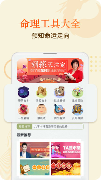 根據(jù)生辰八字、八字排盤、紫微斗數(shù)、星座形象,解讀你的事業(yè)、婚姻、健康,讓你把握現(xiàn)在和未來(lái)。