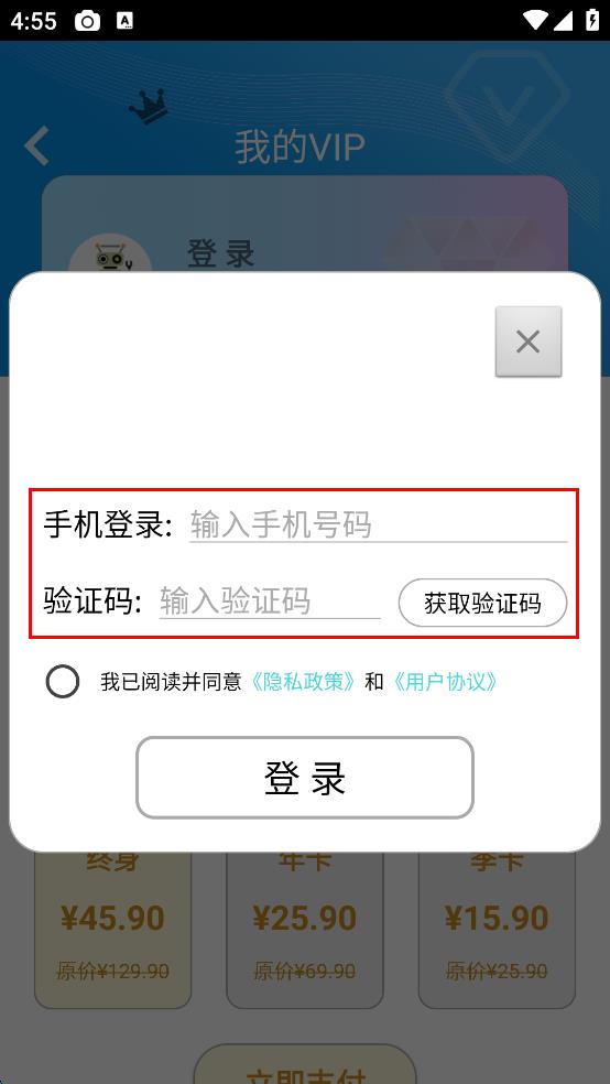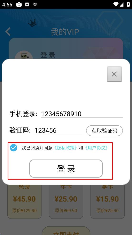 4、勾選我已閱讀并同意隱私政策和用戶協(xié)議,點(diǎn)擊登錄按鈕完成登錄。