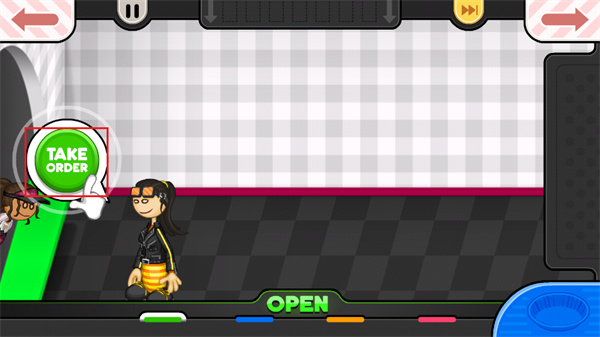 1、進入到游戲的場景內之后,玩家需要點擊屏幕之中的【take order】按鈕,以進行訂單的承接;