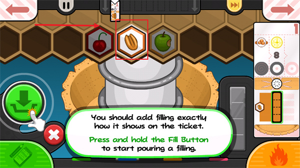 5、點擊對應的食材后,需要點擊屏幕左下角的綠色按鈕,長按以進行更多堅果的填充,直到填滿;