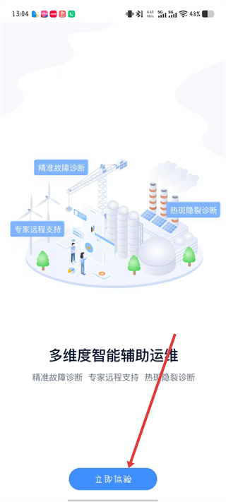 1、打開全國光伏監(jiān)測APP,點擊立即體驗的按鈕。