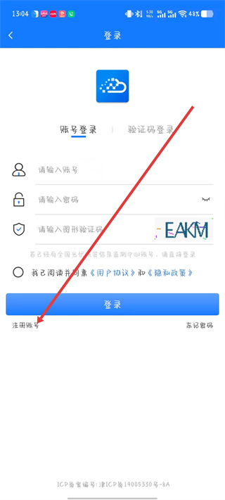 2、在登錄頁面點擊注冊賬號選項,進入注冊頁面。