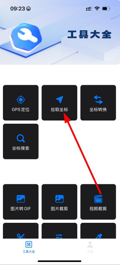 2、在主界面點(diǎn)擊工具大全,進(jìn)入工具列表,若想獲取特定位置坐標(biāo),可點(diǎn)擊拾取坐標(biāo)。