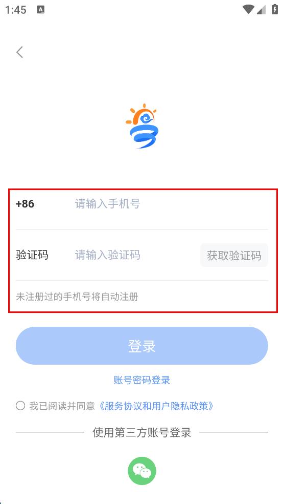 4、將收到的驗證碼輸入到對應(yīng)的驗證碼輸入框中,勾選“我已閱讀并同意服務(wù)協(xié)議和用戶隱私政策復(fù)選框,最后點擊“登錄”按鈕,即可完成登錄操作。