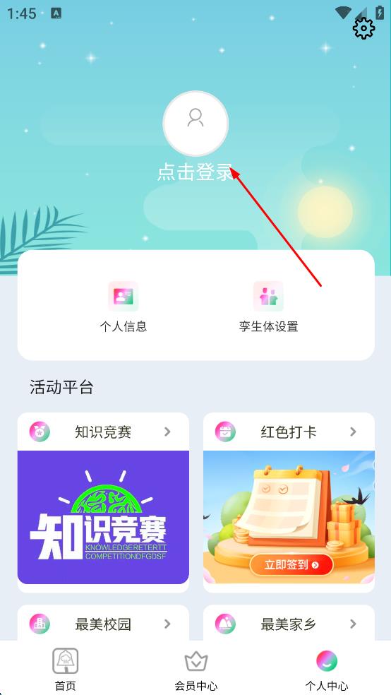 2、進入個人中心頁面,在頁面上方找到點擊登錄選項,點擊該選項。