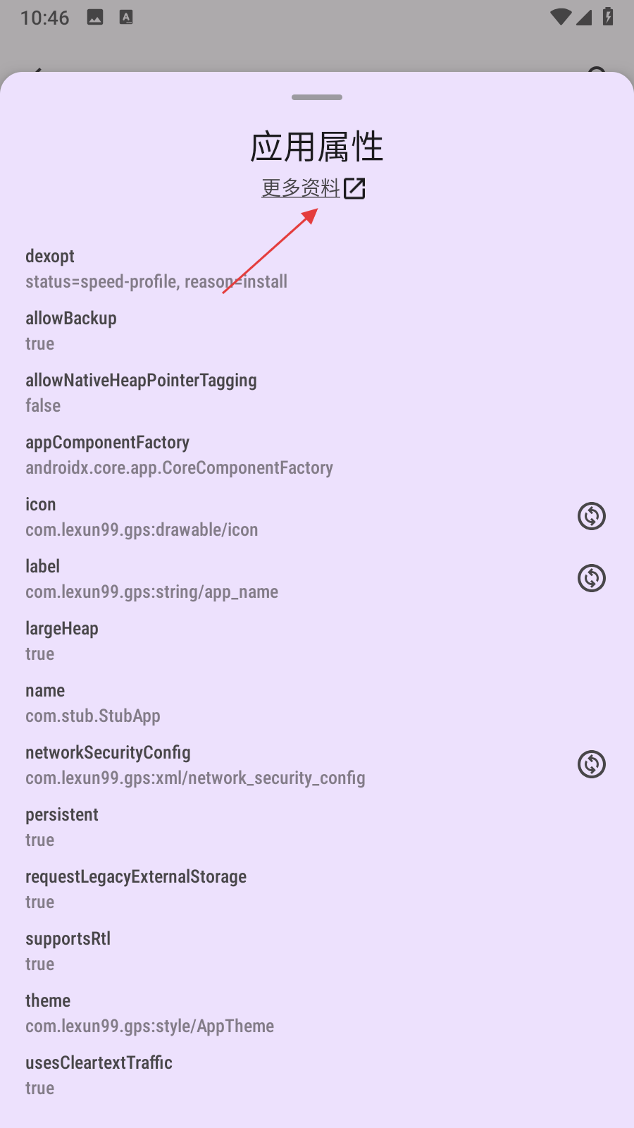 3、進(jìn)入更多資料頁面,可進(jìn)一步查看應(yīng)用屬性,全面了解應(yīng)用的庫相關(guān)信息。