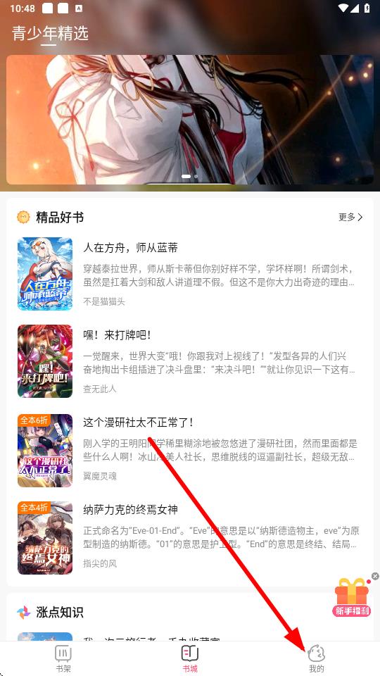 1、打開次元姬小說APP,點(diǎn)擊底部導(dǎo)航欄中我的選項(xiàng)。
