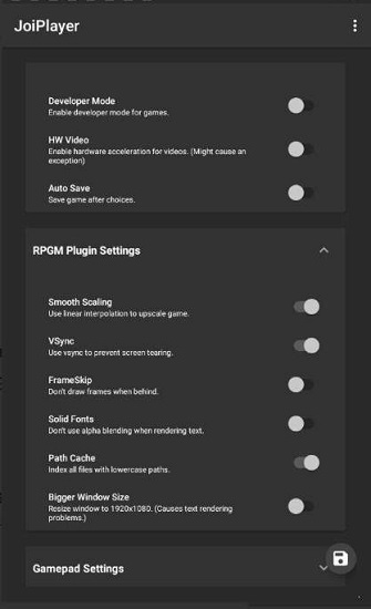 所有支持的游戲類型均支持從電腦儲(chǔ)存檔案。內(nèi)置欺騙菜單注入的RPG制造商的MV游戲。