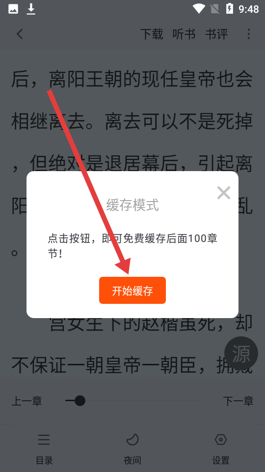 1、在天空閱讀書架頁,找到想緩存小說,如雪中悍刀行,點(diǎn)擊進(jìn)入閱讀界面。