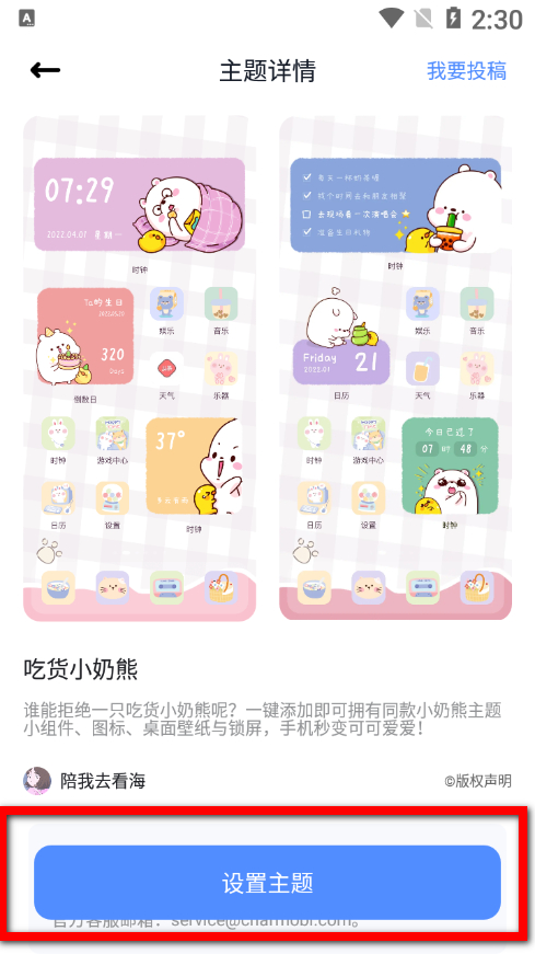4、在主題詳情界面,點擊設(shè)置主題按鈕,完成主題設(shè)置操作。