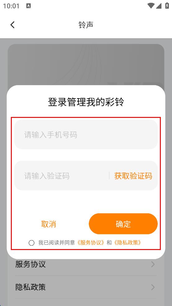 3、點擊右上角個人圖標,彈出登錄管理我的彩鈴窗口。