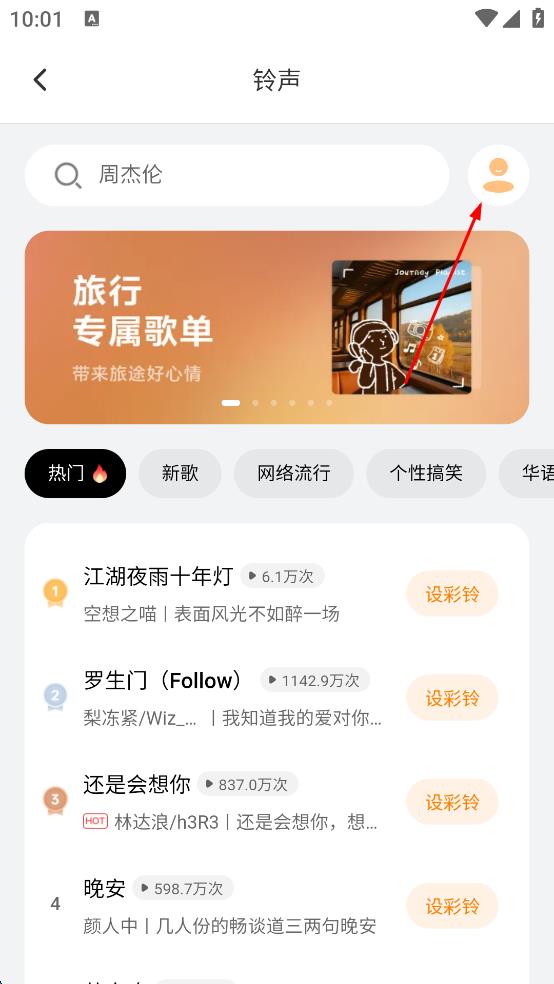 2、在我的頁面點擊火爆鈴聲區(qū)域,進入鈴聲相關(guān)界面。