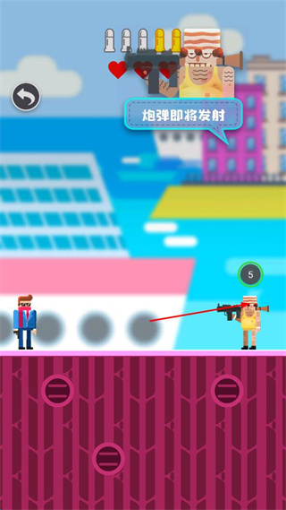 3、進(jìn)入對(duì)戰(zhàn)場(chǎng)景后,根據(jù)提示操作武器,瞄準(zhǔn)對(duì)手并完成炮彈的發(fā)射攻擊。