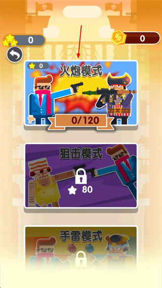 1、進(jìn)入子彈先生狙擊對(duì)決界面,找到開始游戲按鈕并點(diǎn)擊,進(jìn)入模式選擇頁(yè)面。