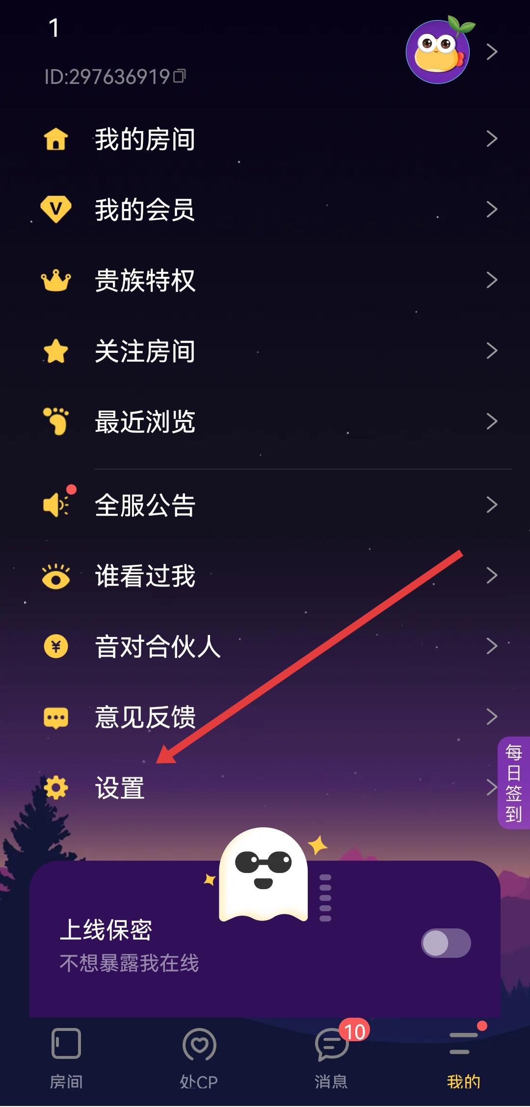 1、在我的頁面,我們需要點擊設(shè)置的選項,然后進入設(shè)置的界面。
