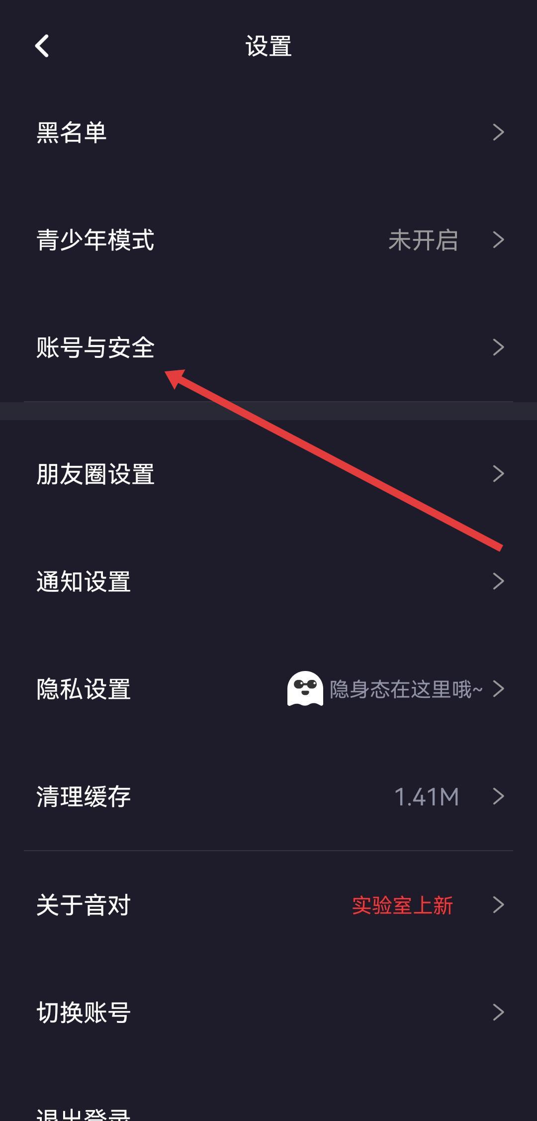 2、在設(shè)置的頁面中,找到并點擊賬號與安全選項,進入賬號安全設(shè)置頁。