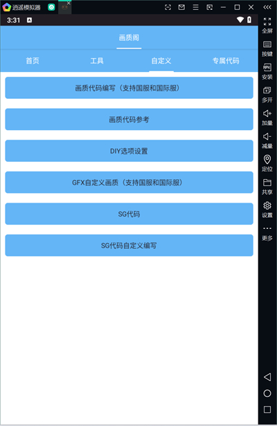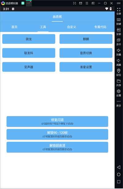 畫質(zhì)閣app是一款能夠幫我們的游戲畫質(zhì)提升多個檔次的畫質(zhì)提升工具,我們因為手機(jī)配置的問題,無法把游戲畫質(zhì)開到極致,但是畫質(zhì)閣軟件能夠無視配置,直接把畫質(zhì)拉滿,畫質(zhì)閣app流暢運(yùn)行不掉幀,安全不封號,感興趣的朋友趕快來下載使用吧!